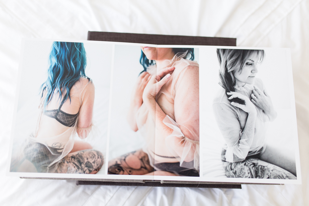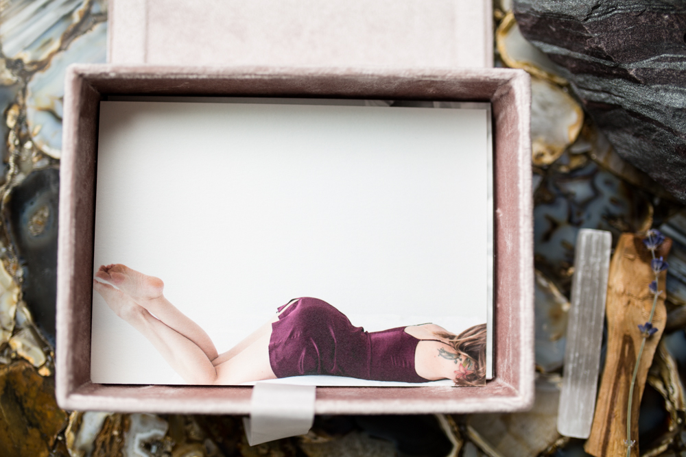 ALBUM The most classic way to enjoy your intimate portraits, the album is complete luxury. Simply choose your favorite images to fill the pages and let me do the rest. Hand delivered in a velvet keepsake box and custom embossed cover! This beauty even comes with your choice of gold or silver gilding — a truly custom design.